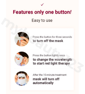 After cleansing, place the LED mask comfortably over your face and select the desired light mode according to your skin concerns. Use for about 10–20 minutes per session.