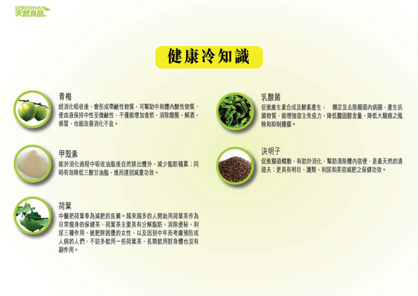 天然良品纖之梅嚴選多種天然草本植物,結合甲殼素、乳酸菌、綠茶粉、普洱茶、半乳寡糖及雙重分解酵素,打造高效瘦身排便食品。促進腸道健康,排出宿便,助力自然排毒與脂肪分解,讓你健康瘦身,收緊腹部曲線。