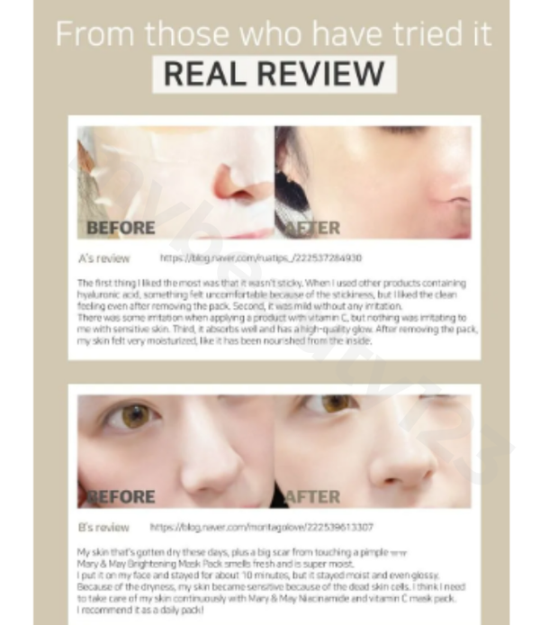 Mary & May Niacinamide Vitamin C Brightening Mask|Even Skin Tone, Fade Dark Spots, and Hydrate for Radiance
