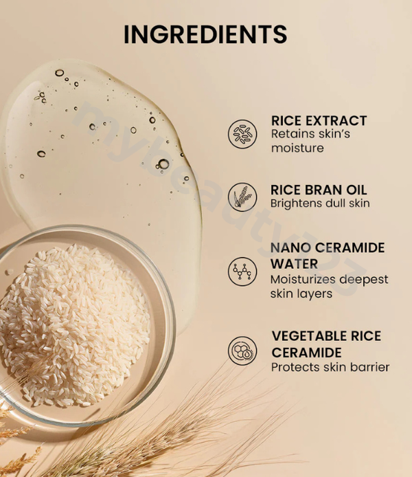- 大米萃取 (Rice Extract):提亮膚色,修護肌膚質地。